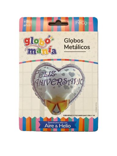 Globo metálico color blanco con frase feliz aniversario (18 pulgadas)
